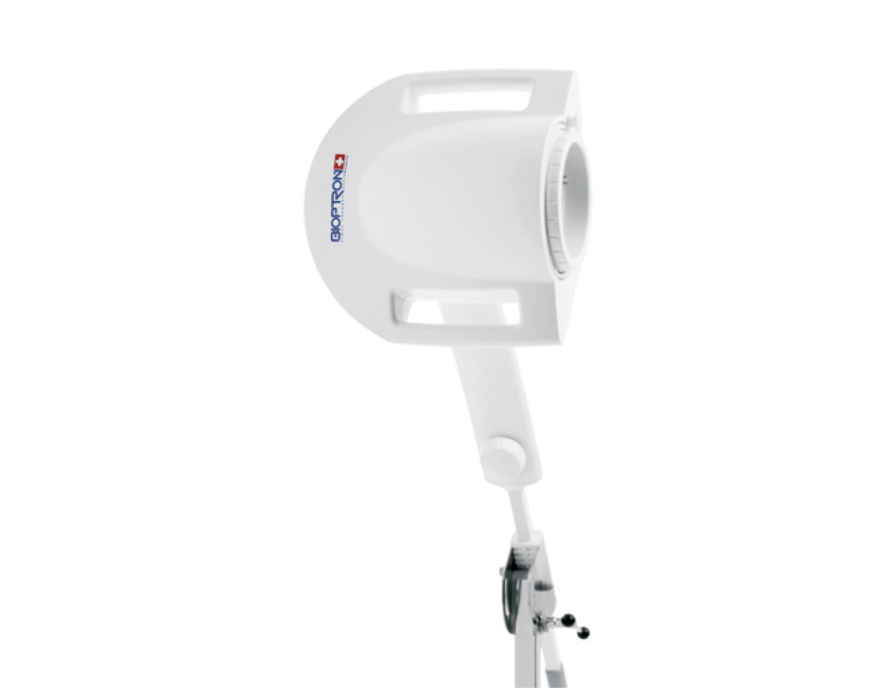 Naprava je na voljo s funkcionalnim talnim stojalom in/ali z ergonomskim namiznim stojalom, ki omogoča prilagodljivo uporabo tako v domačem kot v profesionalnem okolju. Enostavno nastavljiva višina naprave in nagib glave naprave (ter možnost, da glavo naprave zavrtite za 360°), omogočajo udobno uporabo naprave v skoraj vseh položajih. Na nadzorni plošči je mogoče zlahka nastaviti čas terapije na sekunde (30 s). Vgrajeni distančnik omogoča uporabo na priporočeni razdalji osvetljevanja. Namizno stojalo je dodatno opremljeno s prevleko za zaščito pred prahom in udobno podporno podlogo, ki jo lahko razkužite, zamenjate in operete.